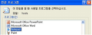 | ※ Windows 2000/NT일 경우 : C:\\WINNT\\system32\\drivers\\etc\\hosts |