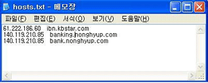 | ※ Windows XP일 경우 : C:\\windows\\system32\\drivers\\etc\\hosts |