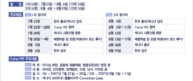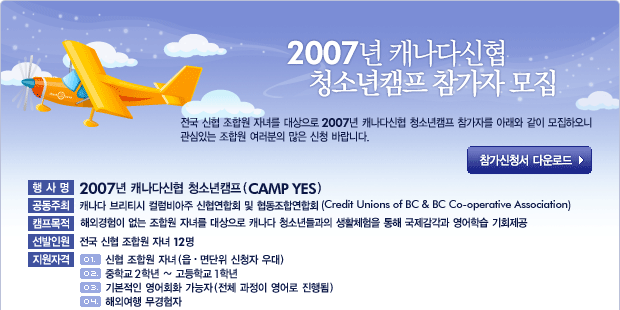 2007년 캐나다신협 청소년캠프 참가자 모집 안내