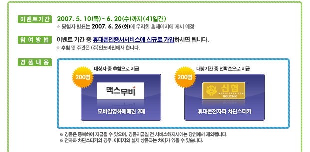 휴대폰인증서 저장서비스 이벤트