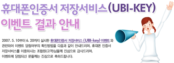 휴대폰인증서저장서비스 이벤트 결과 안내