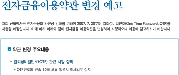 전자금융이용약관 변경 예고