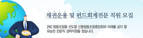 | 제출서류 | |  | 입사지원서 |  | 최종학교 졸업증명서 |  | 주민등록등·초본 각1통 |  | 자격증사본 |  | 경력증명서 |  | 보훈대상증명서(해당자) |  | 자기소개서(운용내역 포함) | | | | 접수기간 | |  | 2007. 8. 16(목) ~ 8. 31(금)까지 |  | (평일-09:00 ~ 17:00, 단, 토요일은 접수하지 않음) | | | | 접 수 처 | |  | (137-839) 서울특별시 서초구 방배4동 874-1(7호선 내방역 6번출구) | | | 신용협동조합중앙회 자금운용부(3층) 채용담당자(02)590-5632 |  | (가급적 직접 내사 제출바라며, 등기 우송인 경우 당일 도착분 까지 유효) | | | | 기 타 | |  | 제출된 서류는 일체 반환하지 않음 |  | 합격자는 개별 유선통보 | | | |