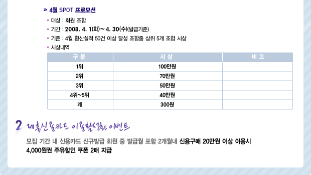 2008년 상반기 제휴카드 이벤트 실시 안내