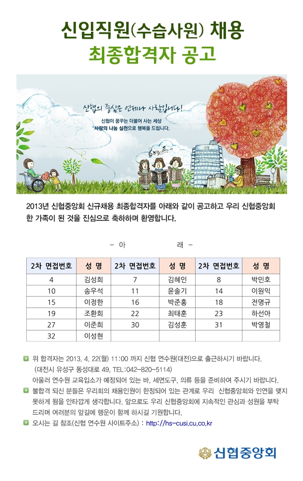 신입직원 채용 최종합격자 공고