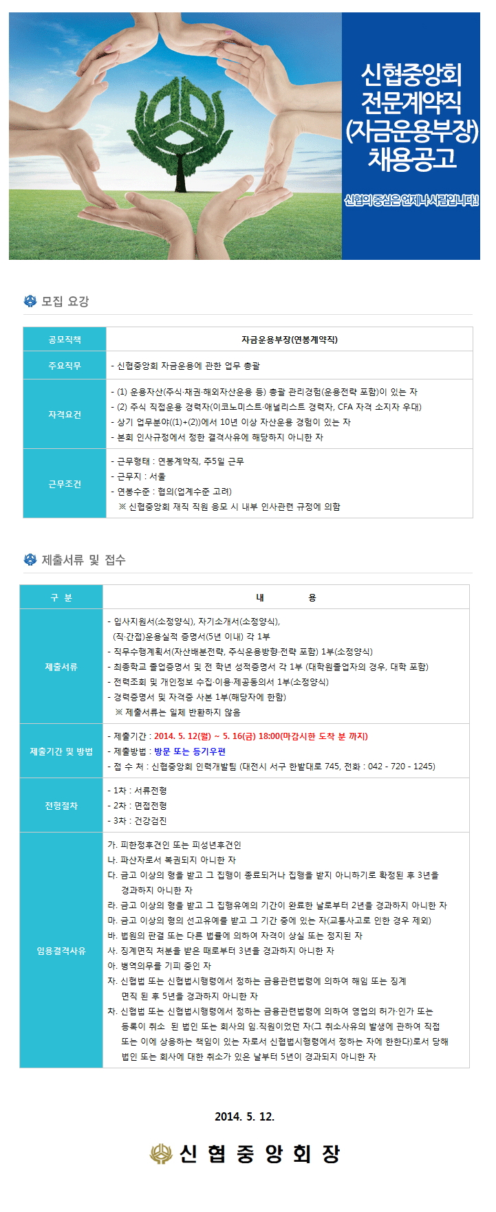 전문계약직(자금운용부장) 모집 공고