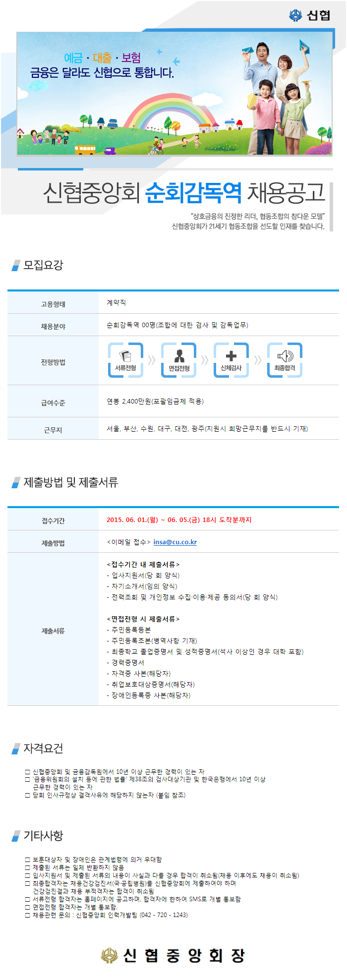 신협중앙회 계약직(전문비서직)직원 채용 공고