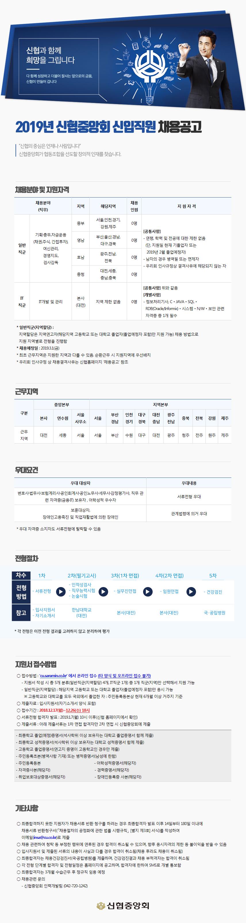 2019년 신협중앙회 신입직원 채용공고