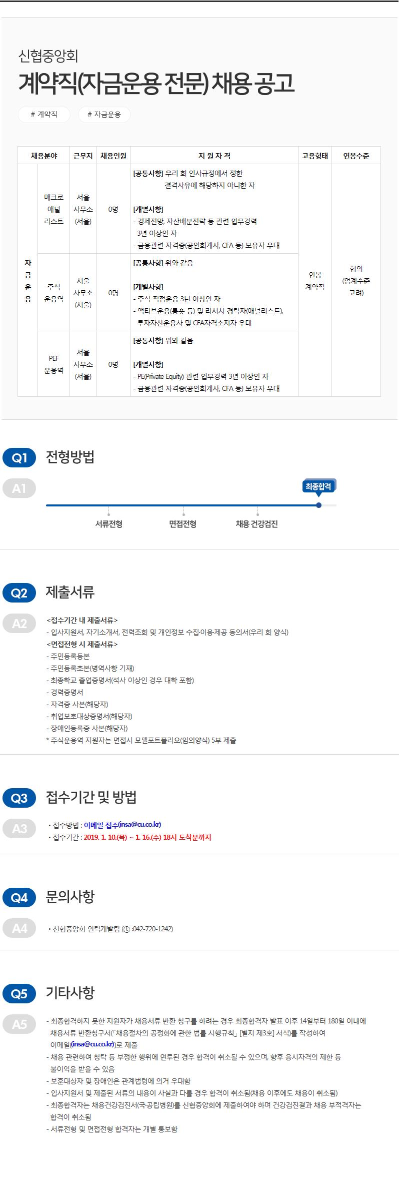 2019년 신협중앙회 계약직(자금운용 전문) 채용 공고