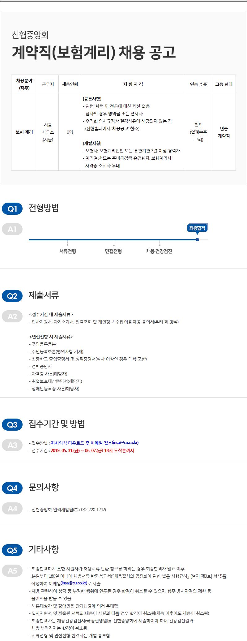 2019년 신협중앙회 계약직(보험계리) 채용 공고