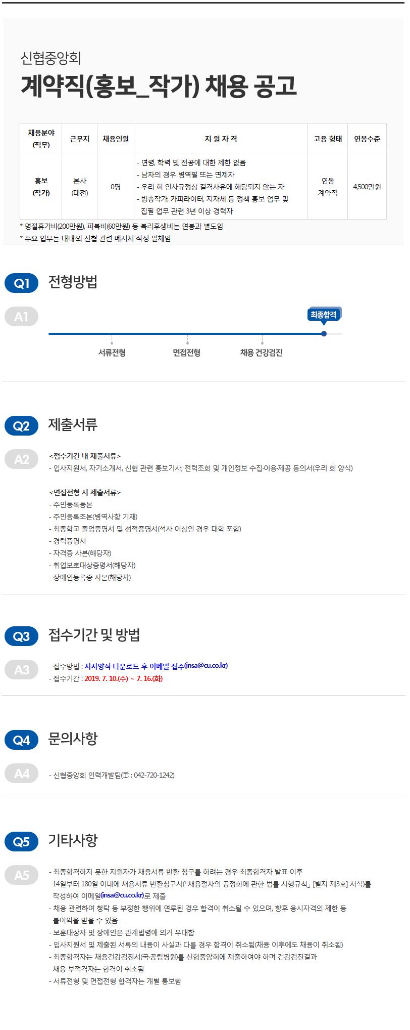 2019년 신협중앙회 계약직(홍보_작가) 채용 공고