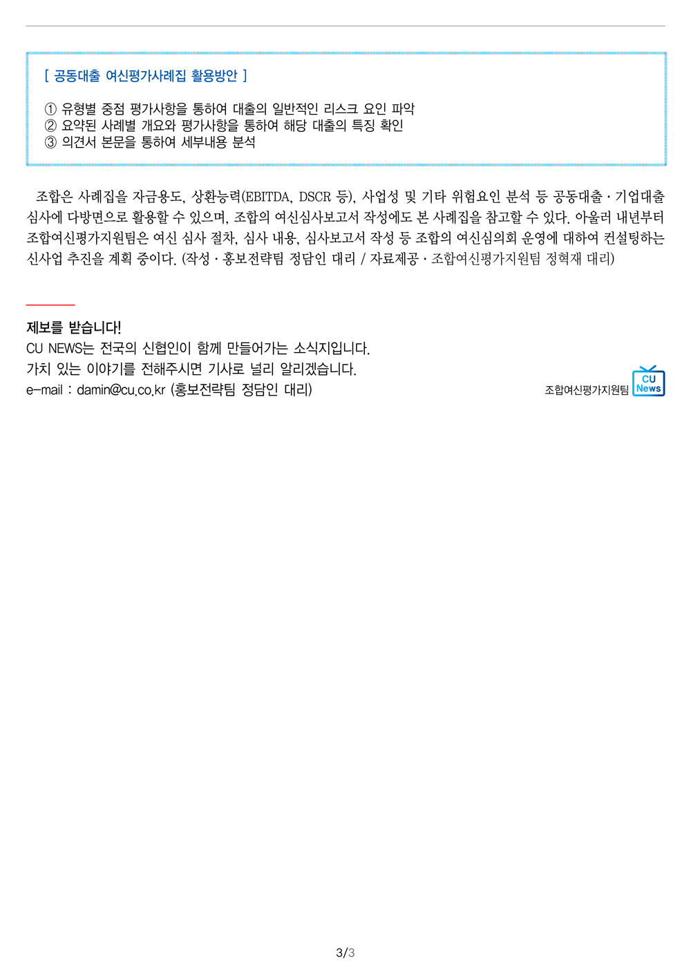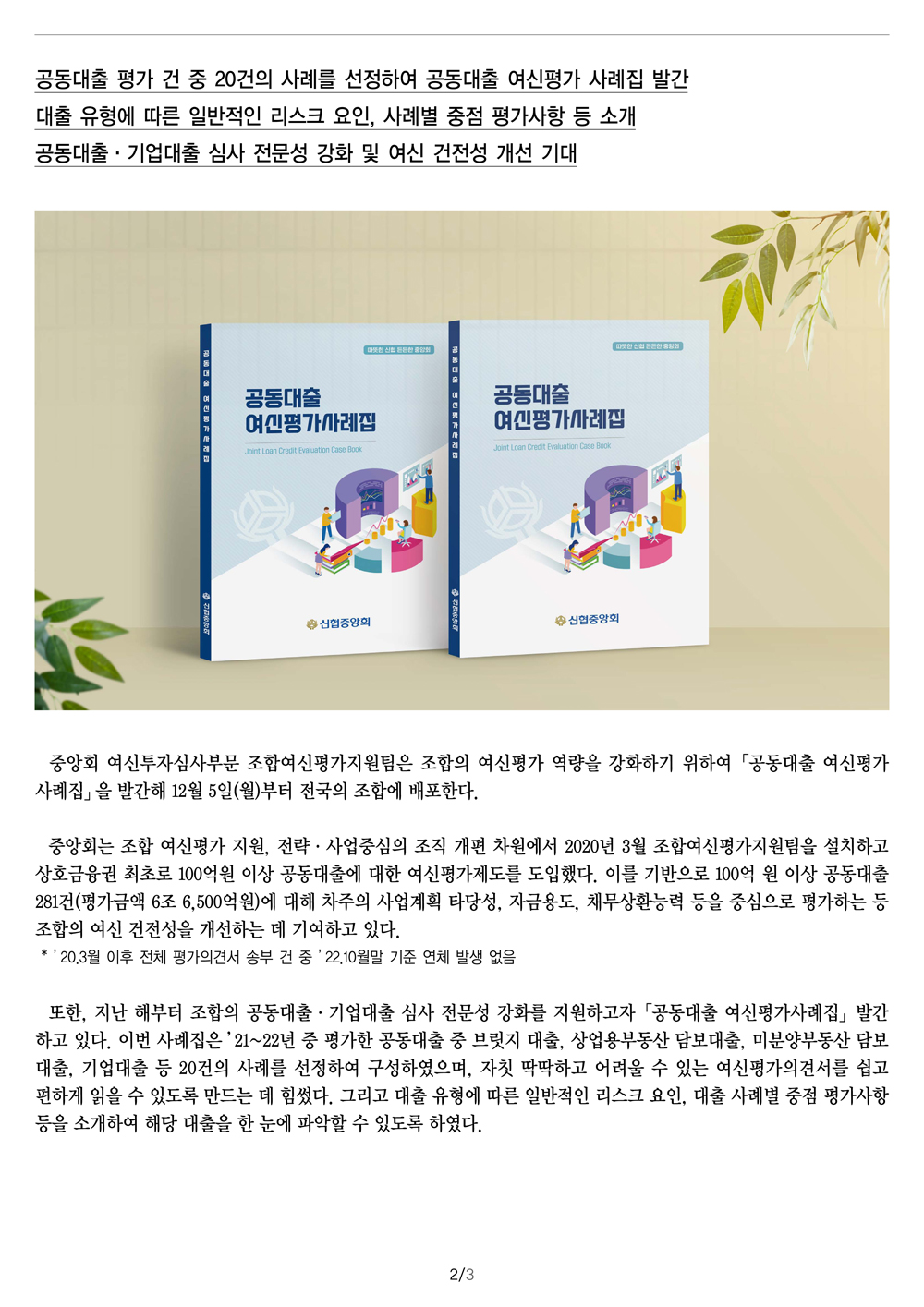 여신 전문성 제고를 위한 공동대출 여신평가사례집 발간